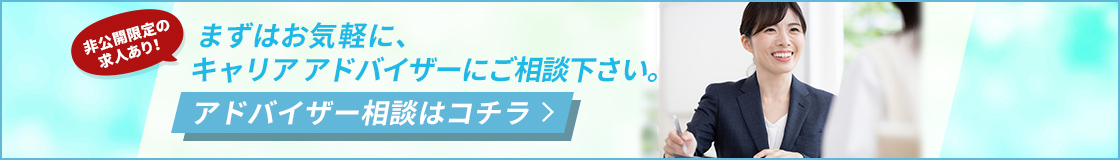ございます。当社は非公開求人も多数抱えておりますので、あなたに合う仕事が見つからなくても、キャリアアドバイザーがしっかりと希望を汲み取り、お仕事を紹介致します。キャリアアドバイザーへのご相談予約は随時受付けておりますので、こちらからエントリー下さい。